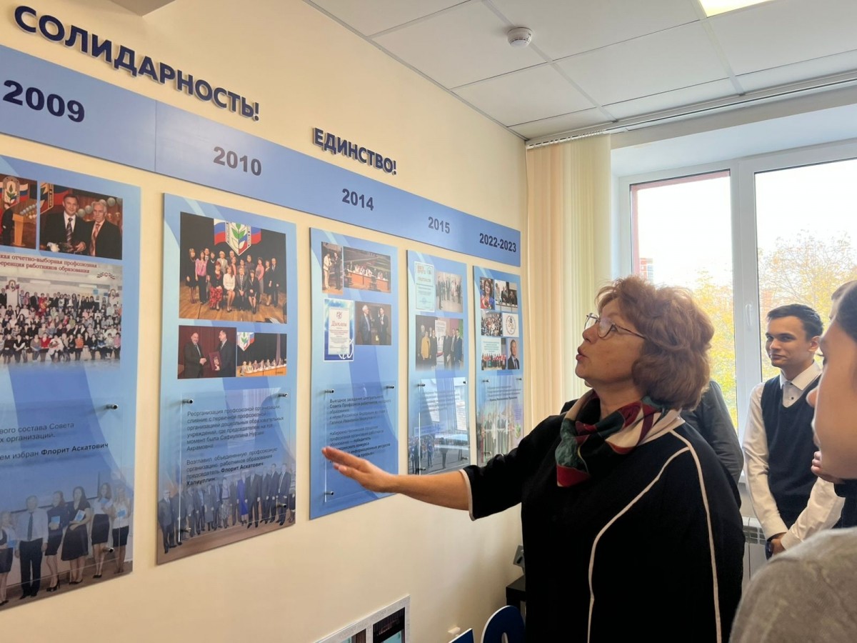 Школьники с большим интересом посмотрели фильм о деятельности городской профсоюзной организации за последние 5 лет, ознакомились с музеем истории профсоюза, изучили экспозицию музея, посвященную развитию профсоюзного движения, а также ознакомились с фотографиями и другими материалами, связанными с этой темой.
