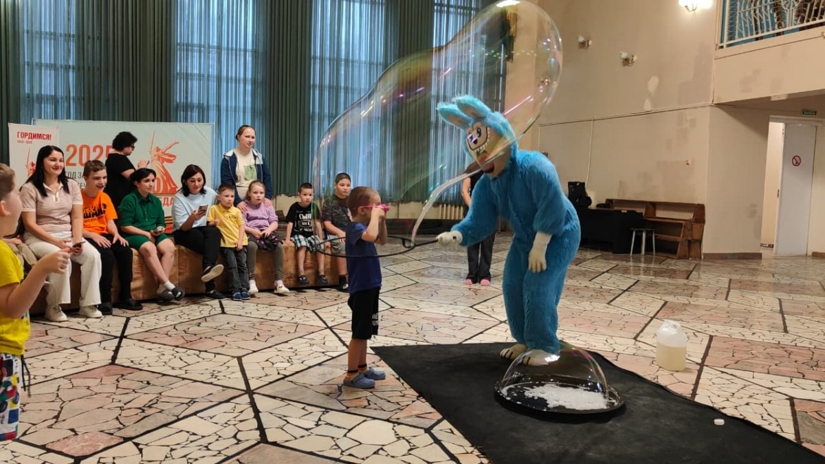 Гостей поприветствовал председатель профсоюзной организации Флорит Халиуллин и пожелал им хорошего отдыха, а председатель Совета Молодых педагогов Александр Альменеев пожелал здоровья и благополучия, отметил, что профсоюз всегда открывает новые возможности для своих членов профсоюза. Для приглашенных было организовано веселое представление силами членов Совета молодых педагогов. К детям в гости пришел сказочный персонаж «Лабубу». Вместе с ним дети побывали в увлекательном мире игр, конкурсов и смогли наблюдать за шоу мыльных пузырей и даже побывать внутри них. В завершение увлекательной программы все дети получили сладкие подарки и сделали общее фото на память.
