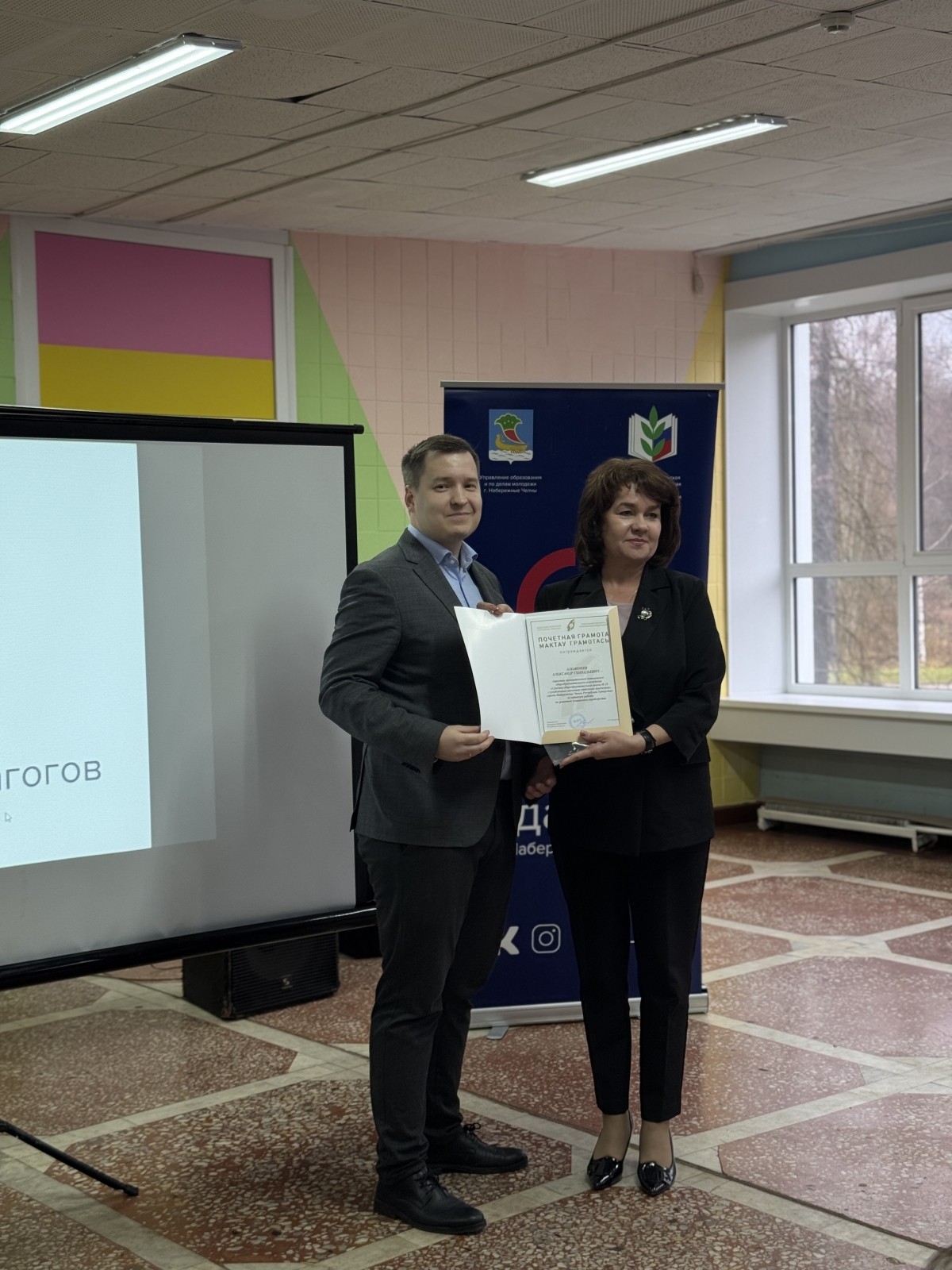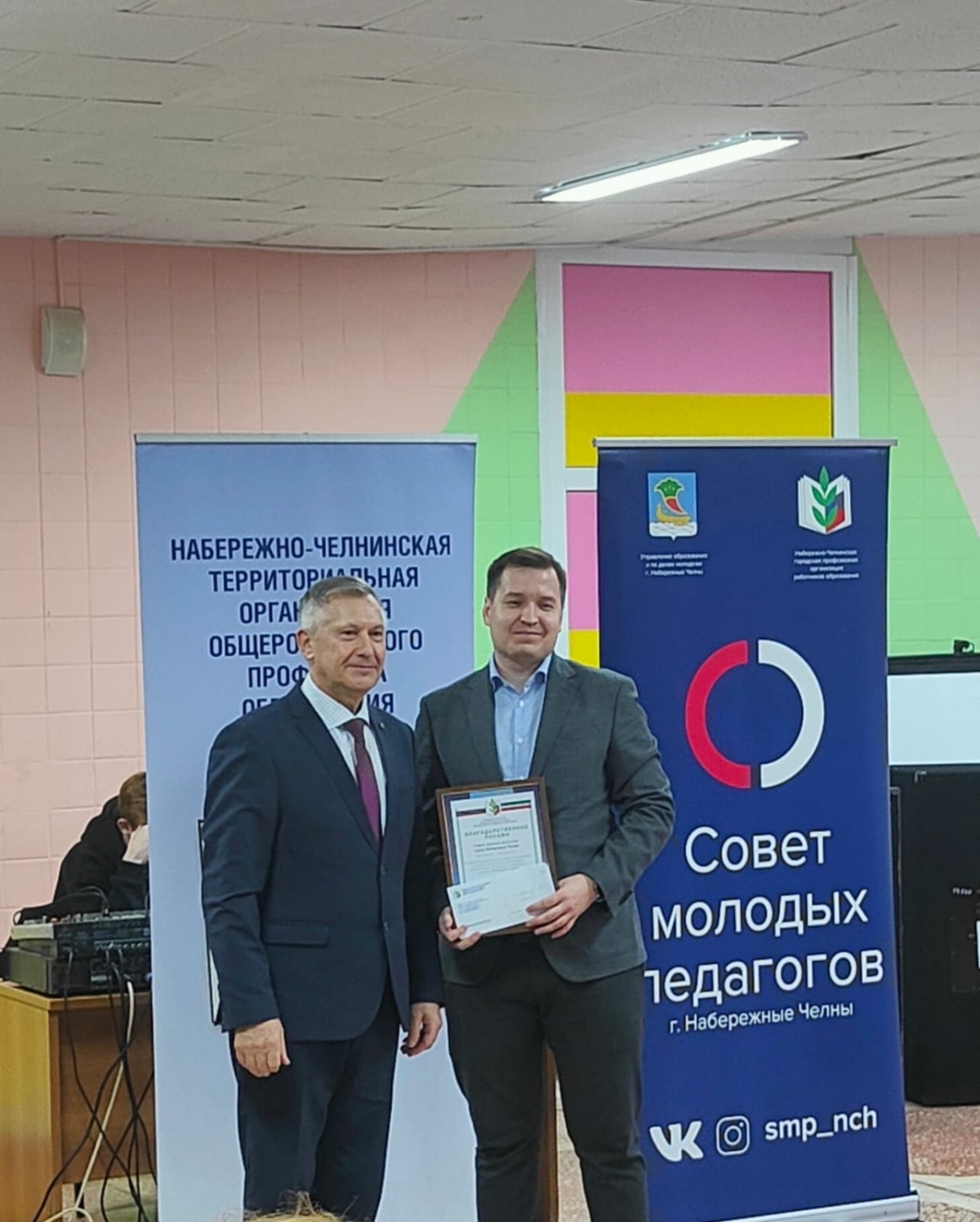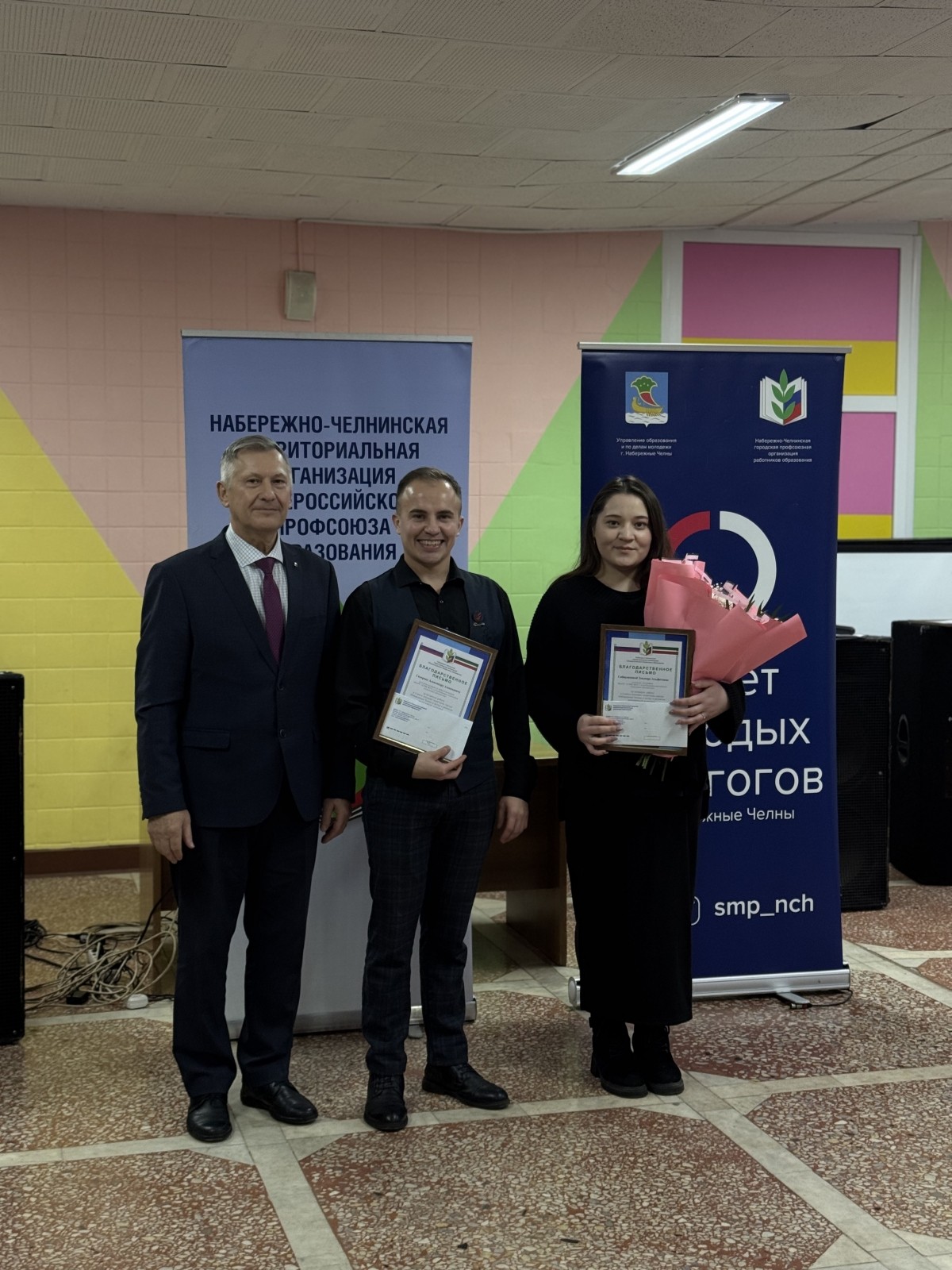 После официальной части форума состоялось награждение. Почетной грамотой Федерации профсоюзов Республики Татарстан был награжден председатель Совета молодых педагогов города Набережные Челны Александр Геннадьевич Альменеев. Также сегодня была вручена стипендия, учрежденная территориальной профсоюзной организацией, пяти молодым педагогам города за лучшую работу по реализации молодежной политики.